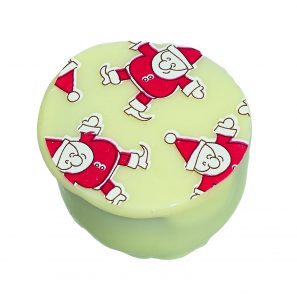 Glucose syrup 3%, Holly Décor. 3% (sugar, glucose syrup, non-hydrogenated palm oil, invert sugar, water, emulsifiers E414, E471,