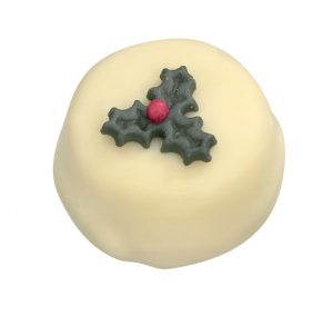 Ingredients: White chocolate 47% (sugar, cocoa butter, whole milk powder, emulsifier: soya lecithin, natural vanilla), Caramel 47% (sweetened condensed skimmed milk, glucose syrup (sulphites), golden syrup, palm oil, butter, sugar, water, emulsifier: E471, stabiliser: pectin, salt, natural flavouring). Glucose syrup 3%, Holly Décor. 3% (sugar, glucose syrup, non-hydrogenated palm oil, invert sugar, water, emulsifiers E414, E471,