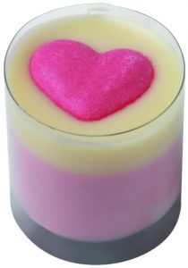 Natural vanilla, Violet flavour, Natural flowers, Acacia gum, Colouring: E120, E132, E133